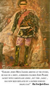 Tim and I confer; he confesses readily to having no capacity for visualisation so we ask John to sketch something. With some amusement, he draws a rough suit jacket on a scrap of paper and when asked for any other images of stuff he’s made, unearths a folder saying: “I only really keep the more esoteric things,” and reveals cuttings of his work defining the figures of some of the world’s most rogueish men of music and letters.